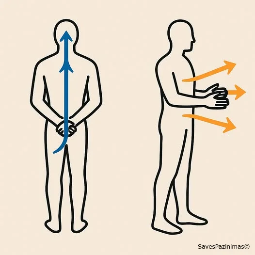 Когда внимание вовне — тело инстинктивно выносит руки вперёд, чтобы "контролировать" поток событий.